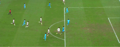 第74分钟,蒯纪闻与队友配合后得分,U23国足6-0