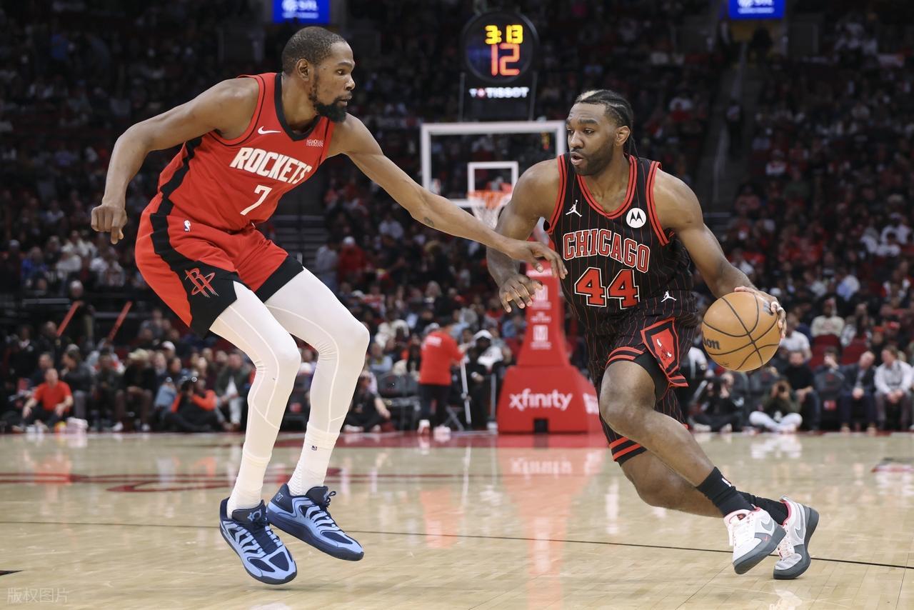 火箭先发:杜兰特、史密斯、申京、奥科吉、阿门! 公牛先发:史密斯、布泽利斯、武切维奇、奥科罗、特雷·琼斯!